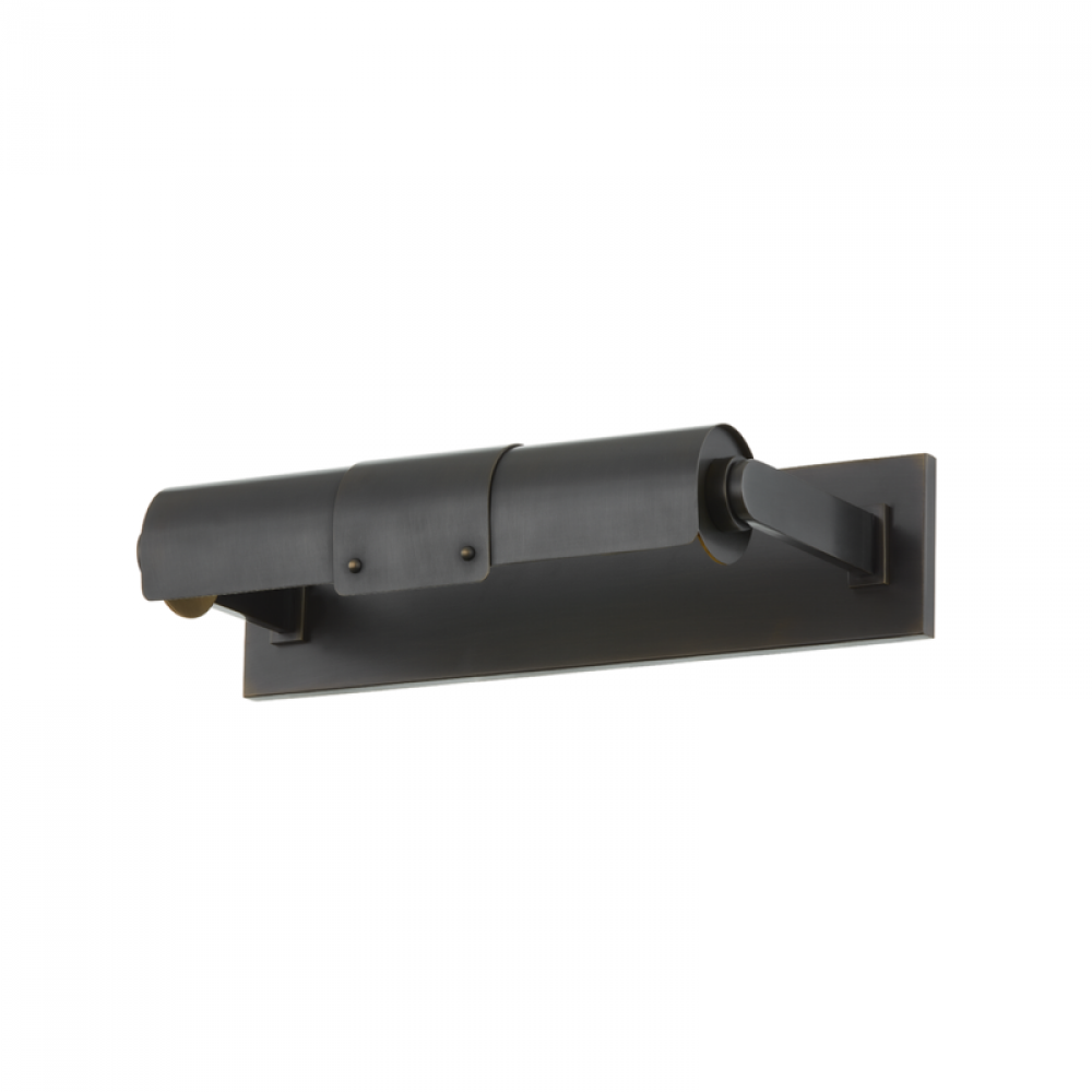 Oneonta elevates traditional picture lighting. The layered metalwork creates a telescoping effect that draws the eye to the fixture and the work of art it illuminates.
