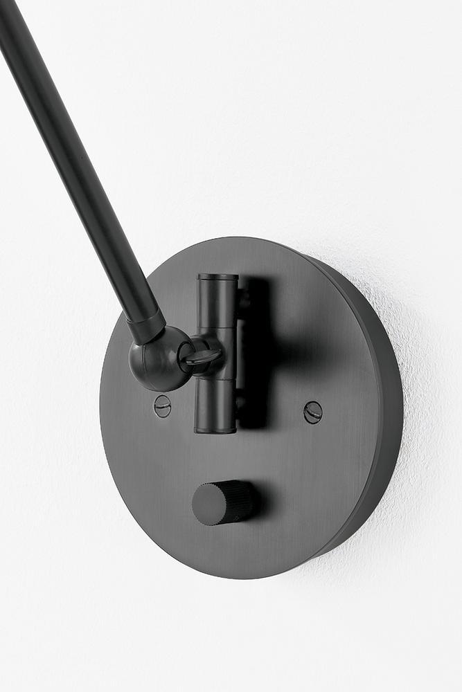 The atomic curves, metal detailing, and slender, adjustable arm of Roald nod to its mid-century inspiration. Ideal as a reading light in a bedroom or office, this versatile sconce features a gourd-shaped shade with decorative perforations. Choose from an Aged Brass or Distressed Bronze finish to complement your decor.