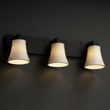 This Three Light Vanity has a Nickel Finish and is part of the Modular Collection.
