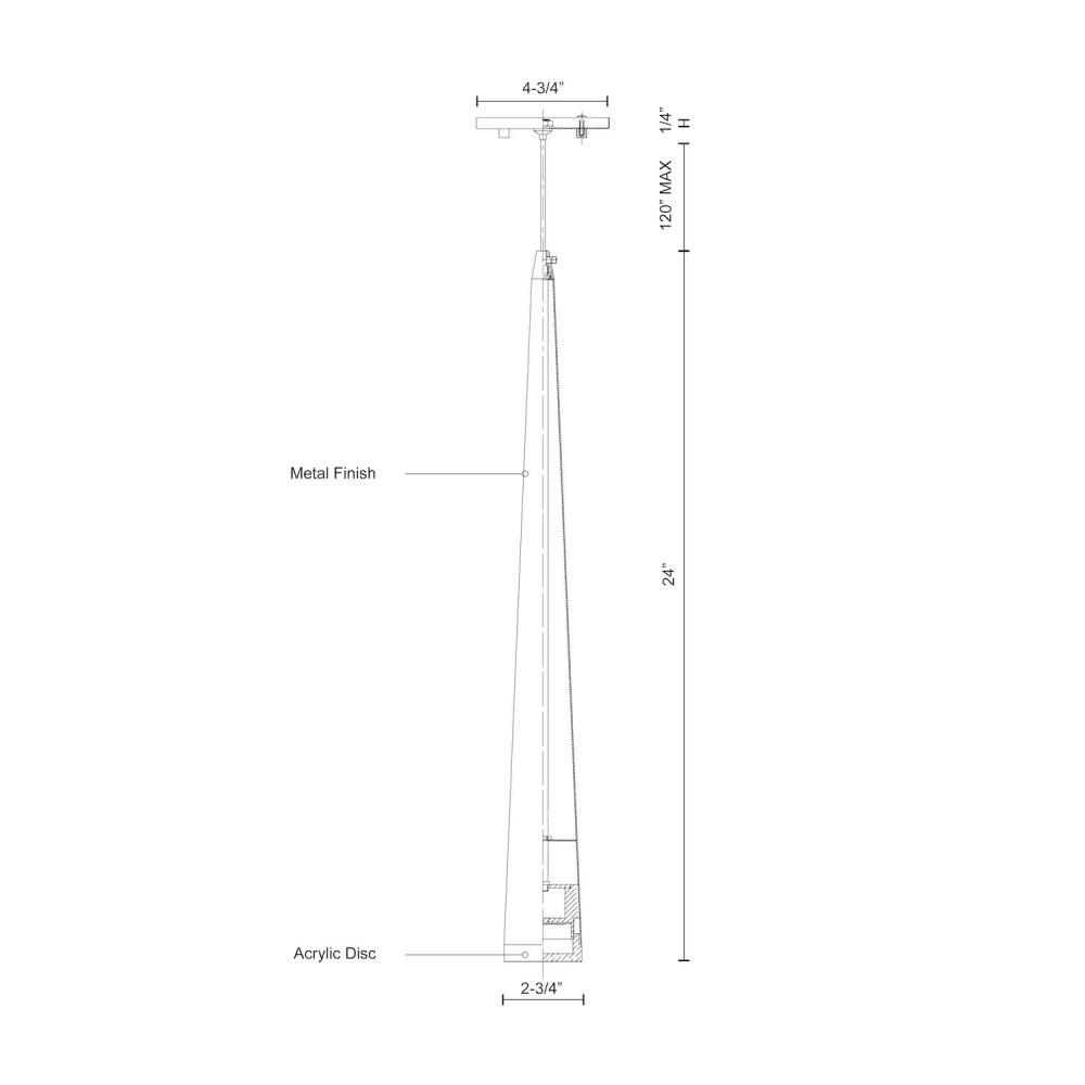 Single LED pendant, sleek conical shape with clear acrylic diffuser. Round canopy matches the selected finish. Equipped with our powerful 12V AC LED technology, available in three different sizes 12", 24" and 36"