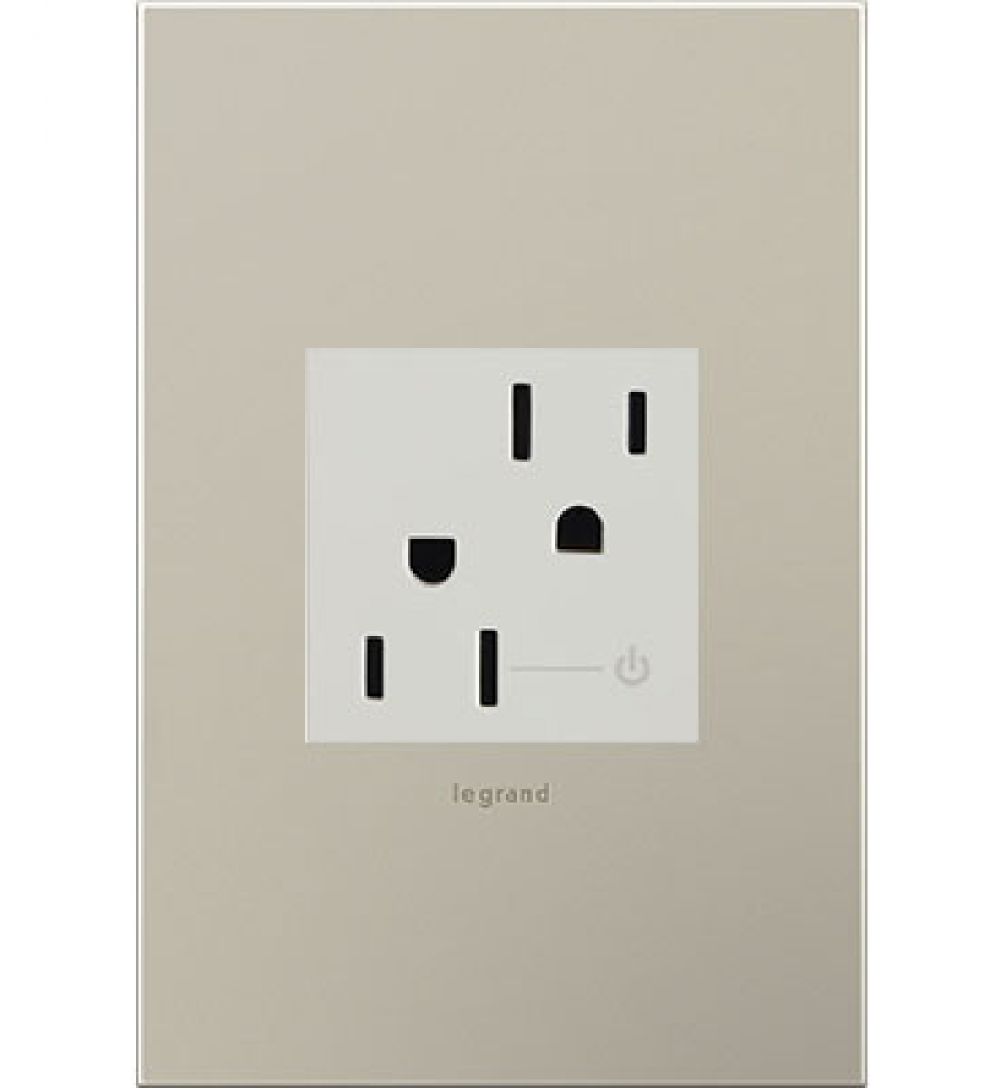 A modern upgrade for style, safety and energy management, this tamper-resistant, dual-controlled outlet from the adorne Collection installs easily in place of an existing outlet. Made exclusively for use with screwless Wall Plates from the adorne? Collection, sold separately.