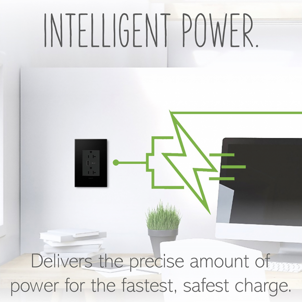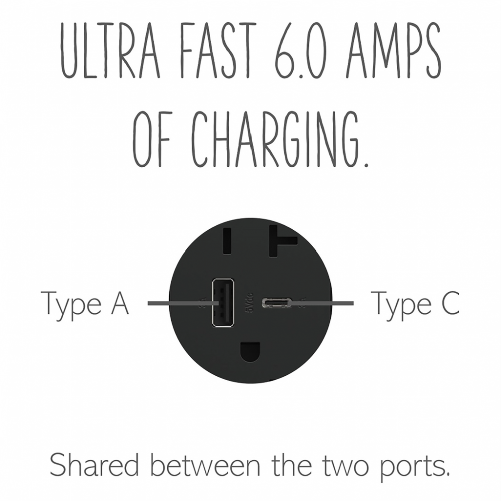 Charge phones, tablets and more up to 40% faster, with Ultra-Fast USB Outlets from the adorne? Collection. Made to deliver a leading 6 amps of power, it features two built-in USB connections, including one to fit USB Type-C devices, and provides a fast, future-proof solution for convenient in-wall charging without an adapter. Easily replacing traditional outlets in as little as ten minutes, this Ultra-Fast USB Outlet transforms your space with modern functionality and the unique, contemporary aesthetic of adorne. Made exclusively for use with screwless Wall Plates from the adorne? Collection, sold separately.