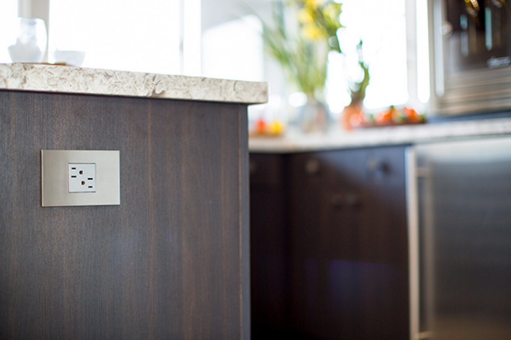 Crafted with real cast metal, this is the coolest contemporary accent to any stylish kitchen or bath. A 4-Gang Wall Plate, it is perfectly sized to fit any combination of up to four standard-sized adorne devices, or up to eight half-sized adorne designer switches and outlets.