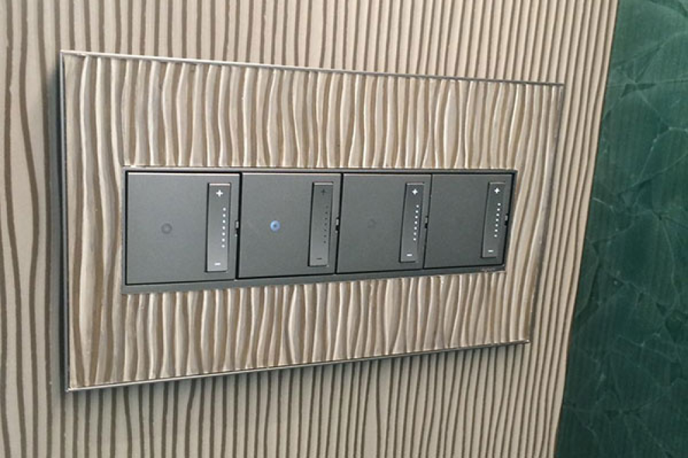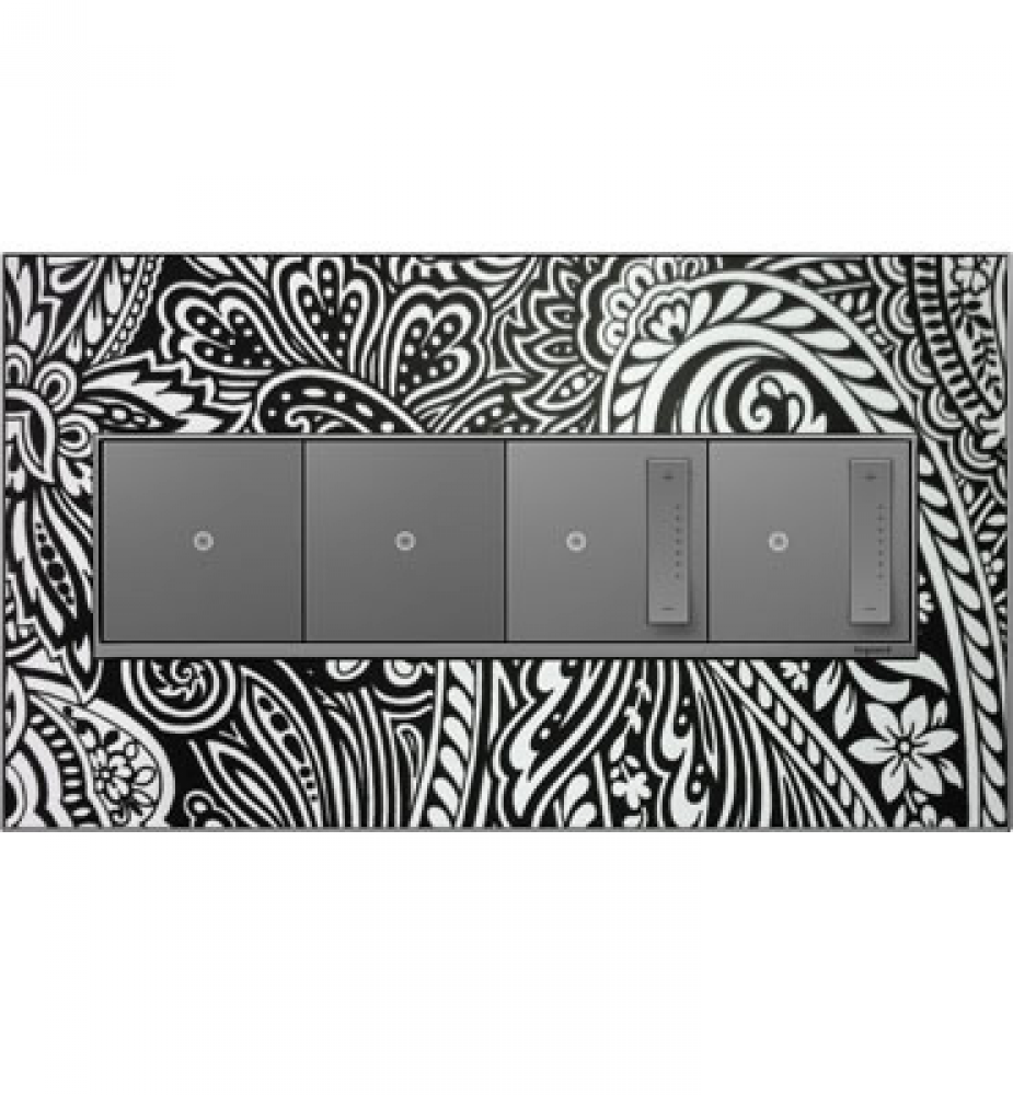 adorne Custom Four-Gang Screwless Wall Plate, Magnesium Trim