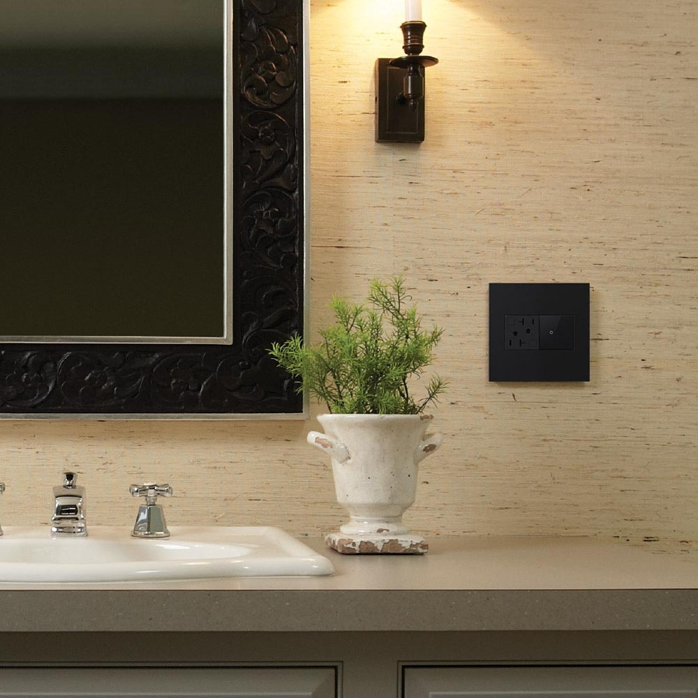 Dark, handsome and a little bit mysterious, it is perfect for adding on-trend edge to any space. Made exclusively for use with designer switches and outlets from the adorne? Collection.This wall plate* features enduring Microban? antimicrobial technology that works to reduce the growth of bacteria, around the clock, for the lifespan of the product. * Existing inventory of switches, dimmers and plastic wall plates from the adorne? Collection at some partner locations may not yet include Microban? protection. To confirm that a specific Legrand product is protected with Microban?, check that the exterior of the product packaging includes a green dot or a ""Protected with Microban"" label.