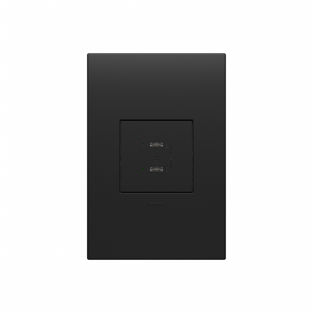 adorne? Ultra-Fast Plus Power Delivery USB Type-C/C Outlet Module, Graphite