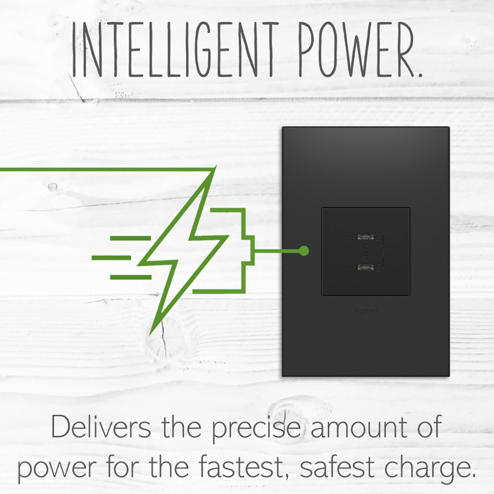 Charge phones, tablets and more up to 40% faster, with Ultra-Fast USB Outlets from the adorne? Collection. Made to deliver a leading 6 amps of power, it provides a fast, future-proof solution for convenient in-wall charging without an adapter. Easily replacing traditional outlets in as little as ten minutes, this Ultra-Fast USB Outlet transforms your space with modern functionality and the unique, contemporary aesthetic of adorne. Made exclusively for use with screwless Wall Plates from the adorne? Collection, sold separately.