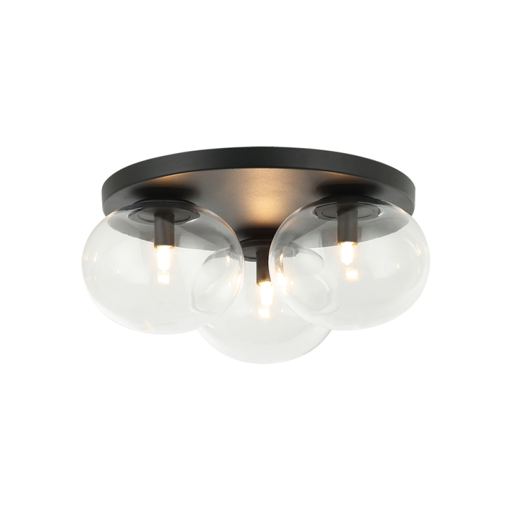 3 LT 16"DIA "BULBUS" MATTE BLACK CEILING MOUNT / CLEAR GLASS G9 LED 10W