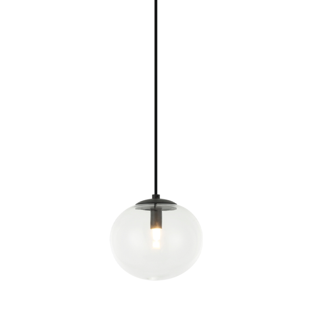 1 LT 6.9" DIAM "BULBUS" MATTE BLACK/CEILING CLEAR GLASS PENDANT LED G9 LED 10W