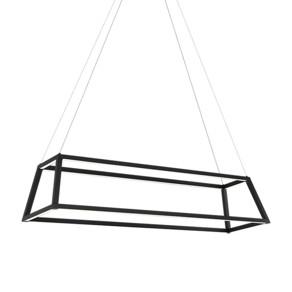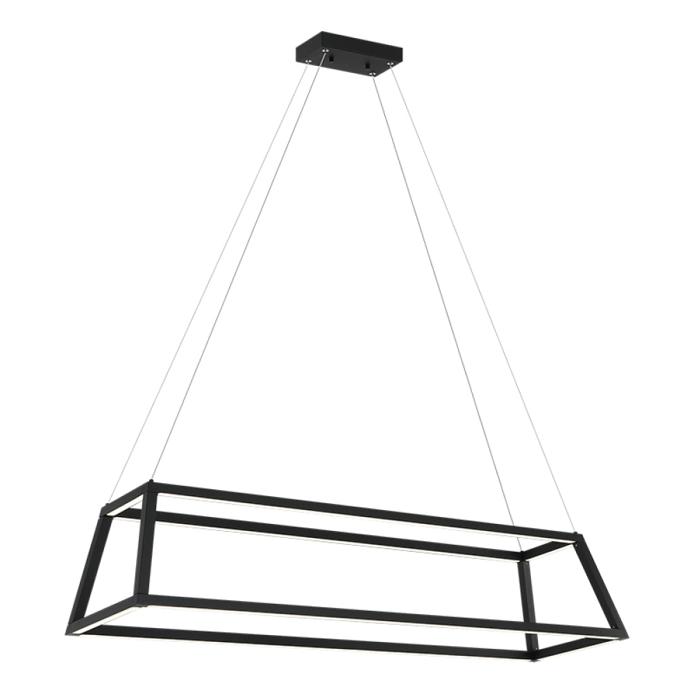 Carlington is simplicity at it’s best. The LED is powered by a driver in the canopy and lights the underside of the metal frame. It is suspended with silver cord and offers a direct uncomplicated vibe.