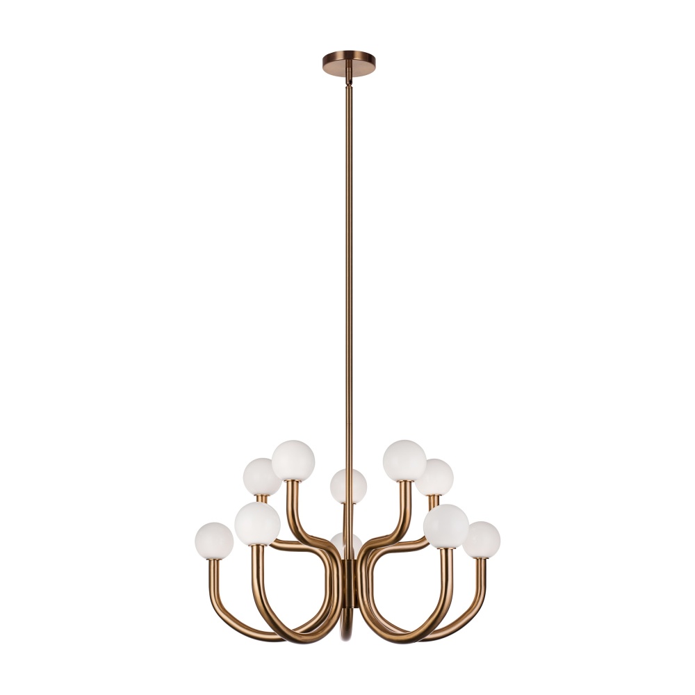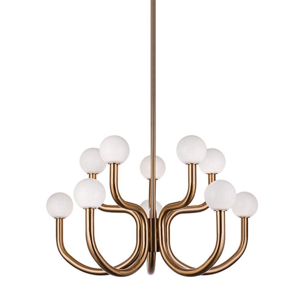 With flowing arms featuring round Opal glass, the Joelle incorporates a mix of style and elegance that could enhance the visual impact. Finishes include chandeliers and wall sconces in Aged Gold Brass and Matte Black.