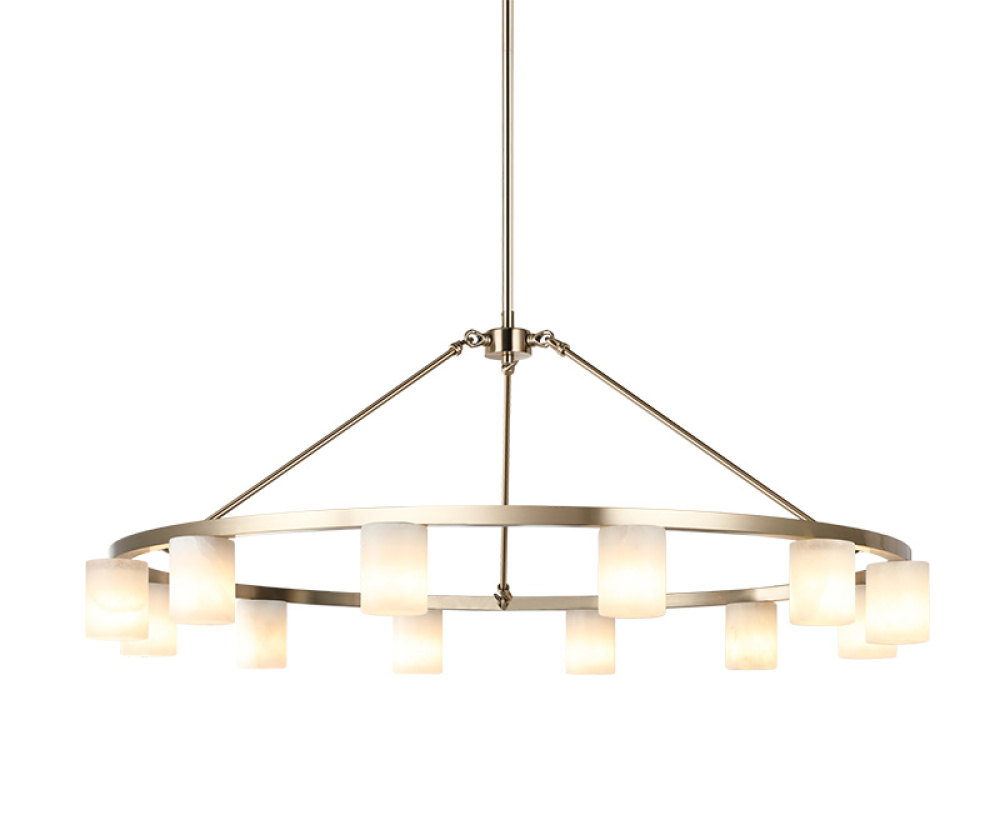 Lindy Sophisticated simplicity meets elevated warmth. Each alabaster shade—designed to face either upward or downward—casts a soft, ambient radiance that adds depth and comfort to any space. Both finishes introduce a subtle touch of luxury, allowing the fixture to stand out as a statement piece while remaining a harmonious complement to contemporary or transitional interiors. LIGHTBULBS NOT INCLUDED