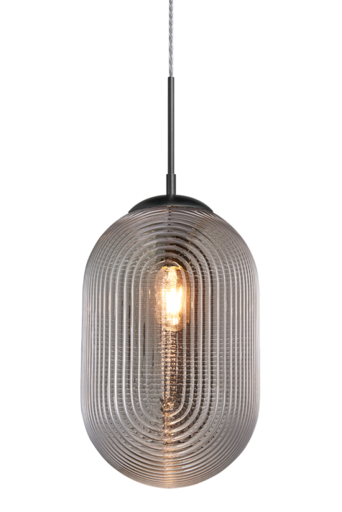 Pendant with a spiral and clean lined design in Cognac or Smoked glass would be a stunning focal point over an island or cozy lounge area. Comes in 3 styles of glass in Chrome and Matte Black canopy.