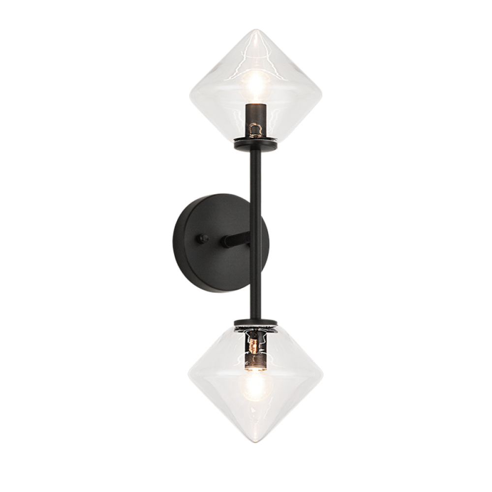Novo is modern yet classic – available in the form of chandelier, wall sconce, and flush mount. The rods and base are either Aged Gold Brass or Black finish paired with a contrasting Opal or Clear round glass and diamond shaped glass. The style is very versatile and will add beauty to multiple rooms.