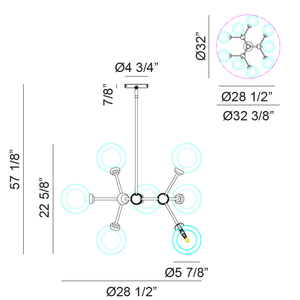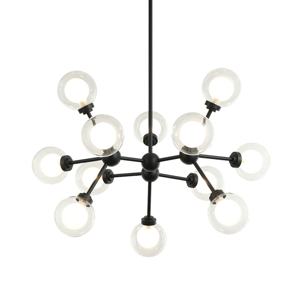 A chandelier inspired by the solar system, the Solaris comes with white opal inner glass and clear outer glass.The design typically aims to capture a celestial, orbital aesthetic.