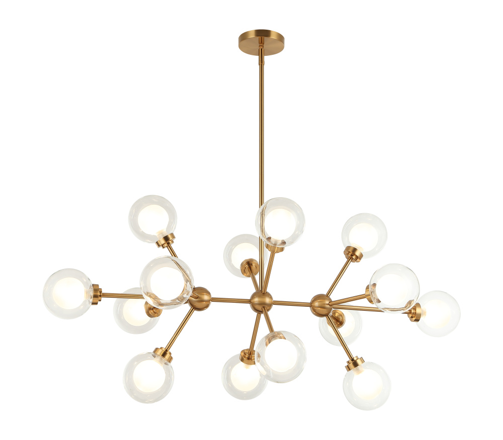 A chandelier inspired by the solar system, the Solaris comes with white opal inner glass and clear outer glass.The design typically aims to capture a celestial, orbital aesthetic.