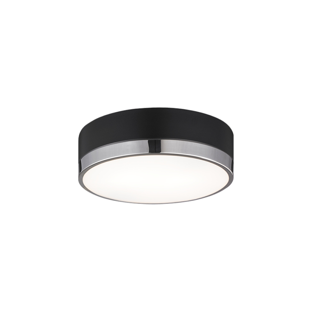 Trydor is an ultra modern take on the traditional flush mount with a higher profile.This two-tone series features a thick Black or White band with a thin contrasting finish of either Chrome or Aged Gold Brass. A versatile fixture, suitable for any room.