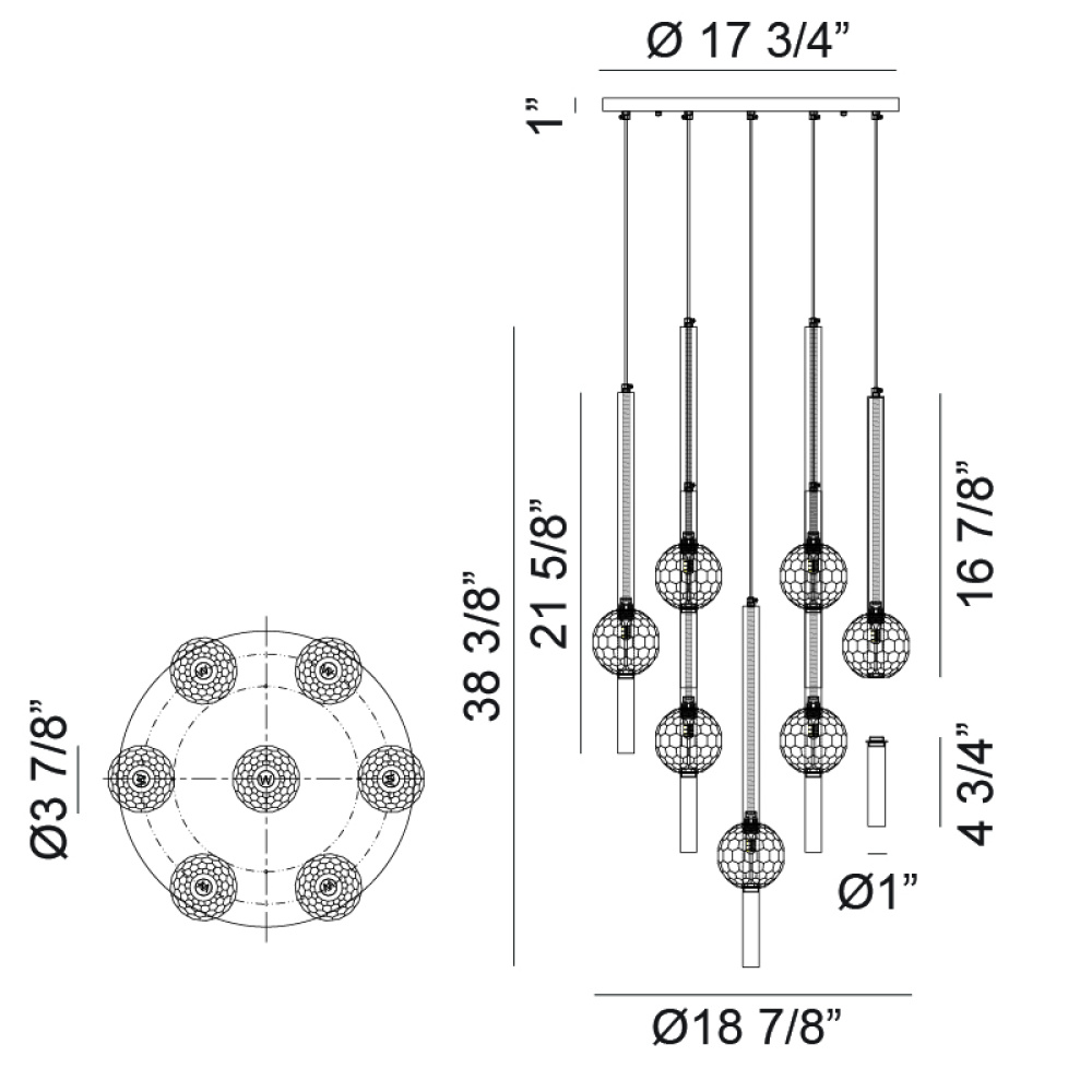 7 LT 17.7" "WINDCHIMER" MATTE BLACK CHANDELIER