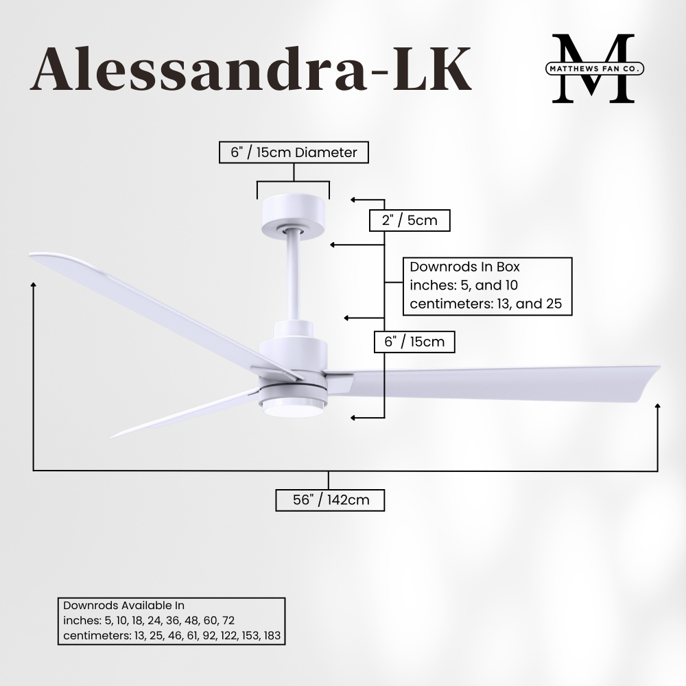 Alessandra-56" Three Blade Transitional Ceiling Fan-5CCT Integrated LED-Matte White Finish
