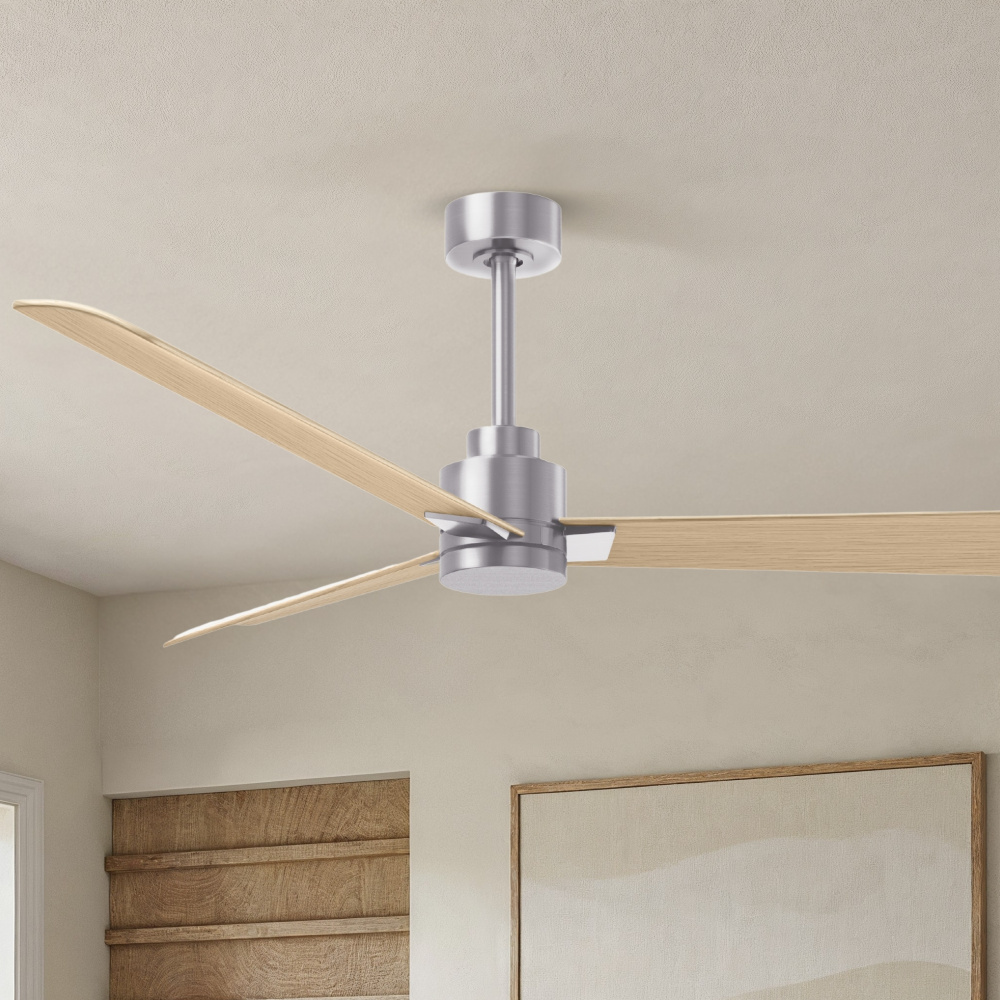 Alessandra - 56" Three Blade Transitional Ceiling Fan - Brushed Nickel Finish - Light Maple Blad