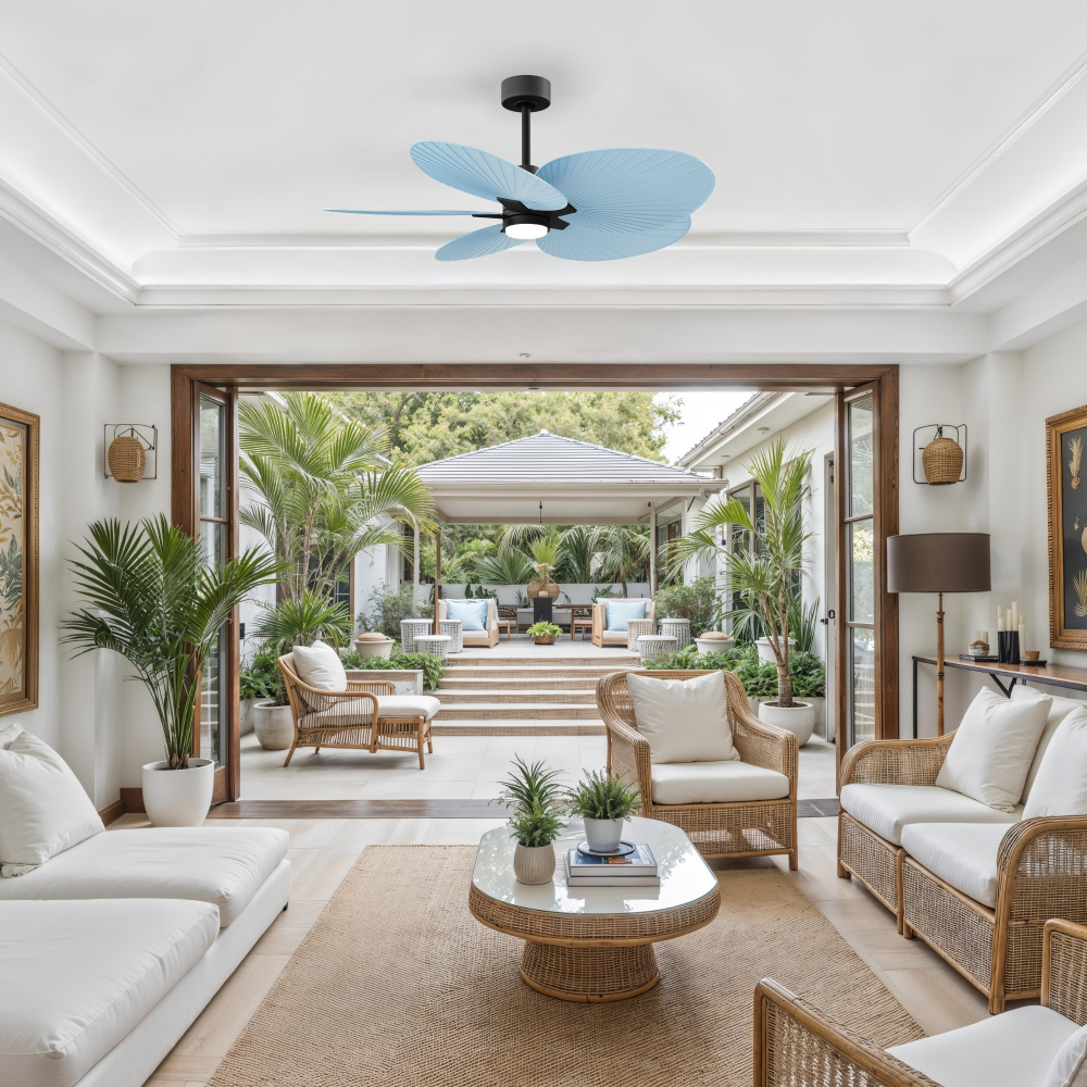 Alessandra Tropical-Five Blade Ceiling Fan-5CCT Integrated LED-Matte Black Finish-Light Blue Blades