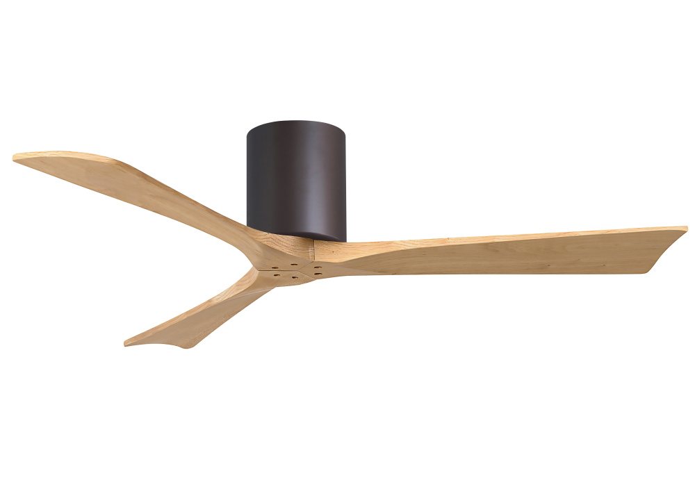 Irene-3H-Three Blade Flush Mount Paddle Fan-52" -Textured Bronze Finish-Light Maple Tone Blades