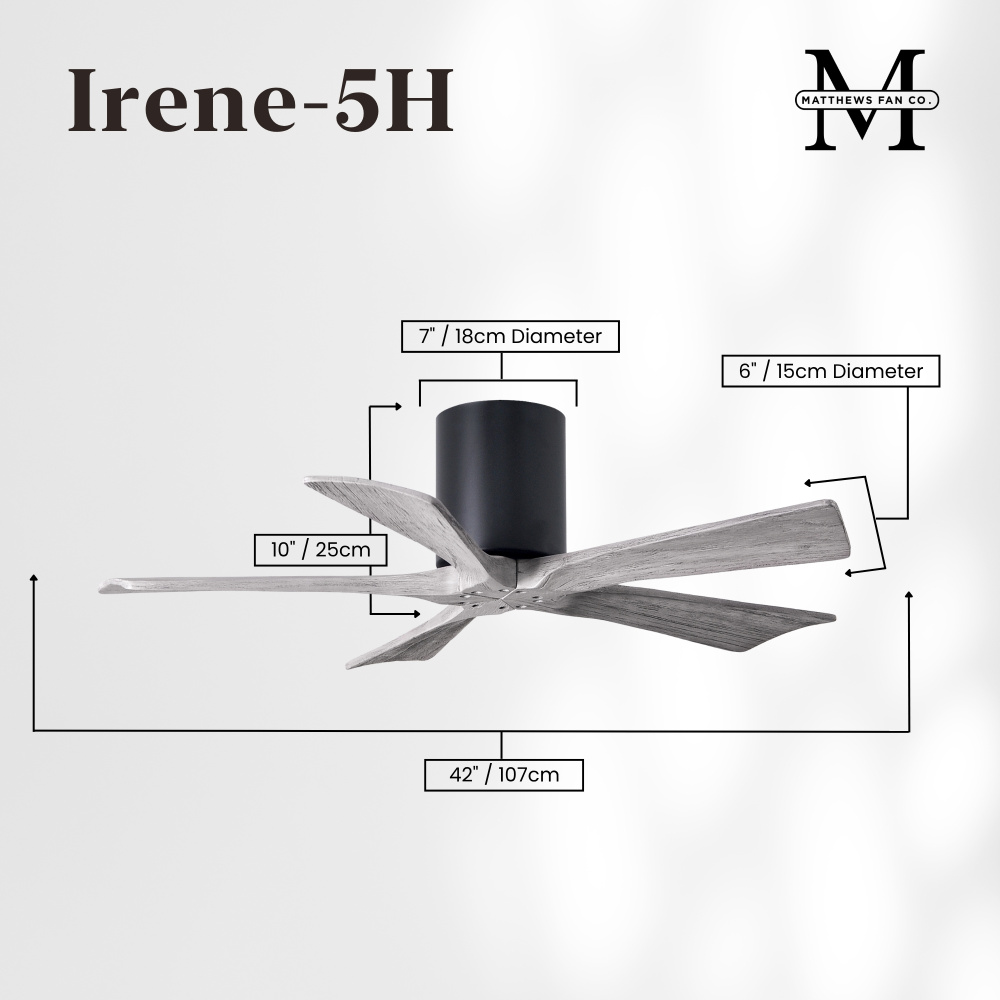 Irene-5H - 42" Five Blade Flush Mount Paddle Fan - Matte Black Finish - Barn Wood Tone Blades