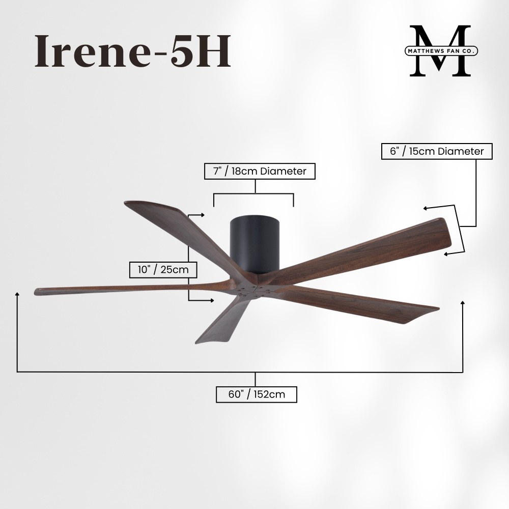 Irene-5H - 60" Five Blade Flush Mount Paddle Fan - Matte Black Finish - Walnut Tone Blades