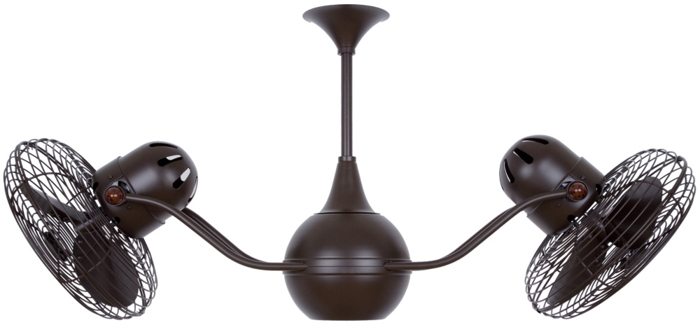 The Vent-Bettina rotational ceiling fan is thoughtfully designed with its arms gently upward curving. The fan offers fluid lines and quiet axial rotation. The fan heads can be infinitely positioned in 180-degree arcs for optimum air movement; the greater the angles of the motors to the horizontal support rods (up or down), the faster the axial rotation. A slow, controlled axial rotation is achieved by both fan head position and fan blade speed.