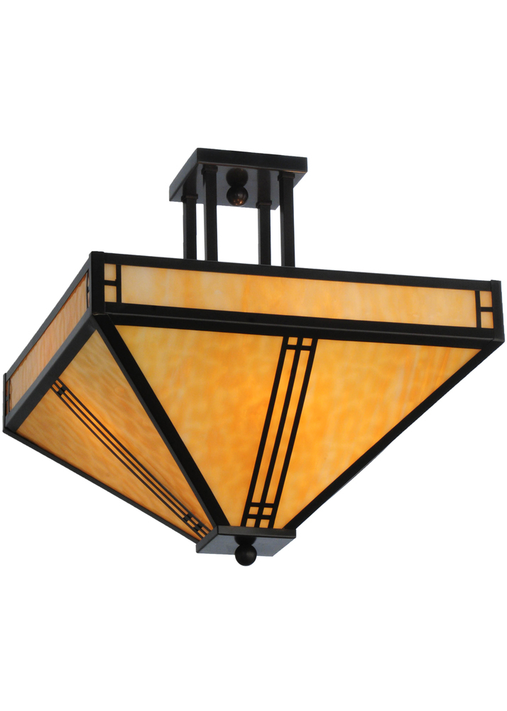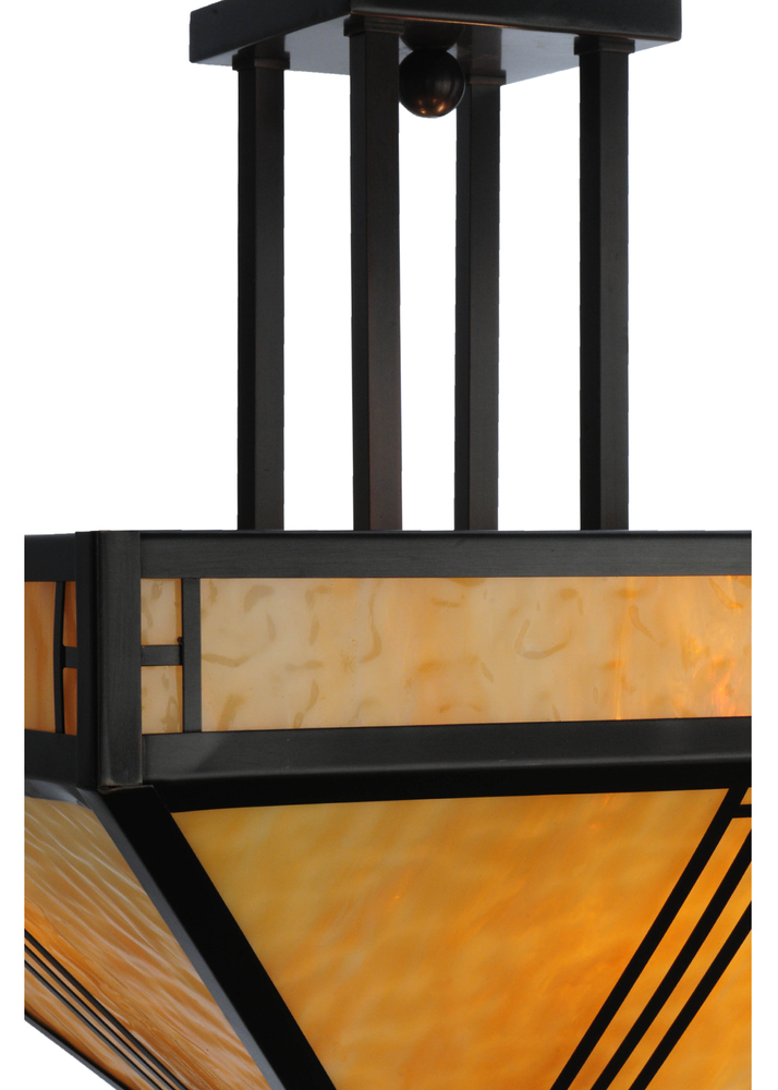 This clean transitional ceiling fixture is designed with an appealing Beige art glass in a Mission styled frame; which is enhanced with accents and hardware featured in a Craftsman Brown finish. This fixture is the perfect illuminating centerpiece that will enhance any decor; for fine homes; restaurants; boutiques and hotels. Prairie Loft is custom crafted in the Meyda facility in Yorkville; NY. Custom sizes; styles; colors and dimmable energy efficient lamping options are available.