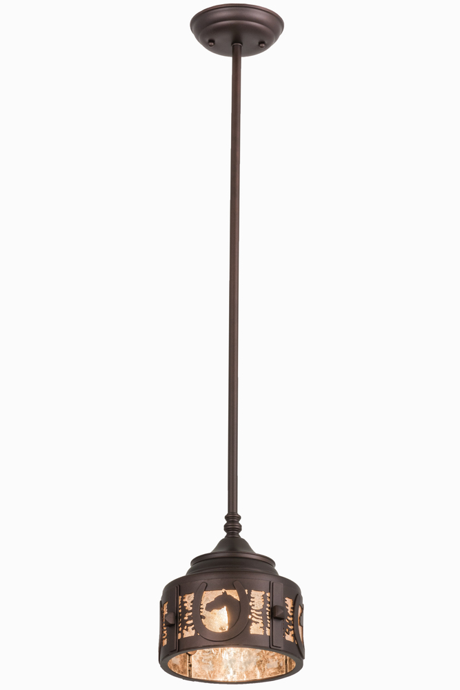 The material is Steel and Mica. The finish is Mahogany Bronze and Solar Black. The diffuser is Silver Mica.