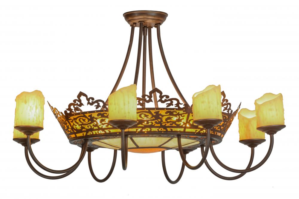 Initially designed as the magnificent centerpiece of the prestigious Stanley Theater in Utica; New York; this ceiling fixture is a smaller version of the largest LED chandelier in the world. Inspired by the Stanley Theater's Mexican Baroque Moorish theme; the shade is designed with Honey Wispy art glass; Botticino Idalight and Amber Mica; complemented with 8 Ivory faux candles perched on bobeches. The hardware is hand finished in Cafe Noir. The fixture is handcrafted by highly skilled Meyda artisans in the Yorkville; New York manufacturing facility. UL and cUL listed for dry and damp locations.