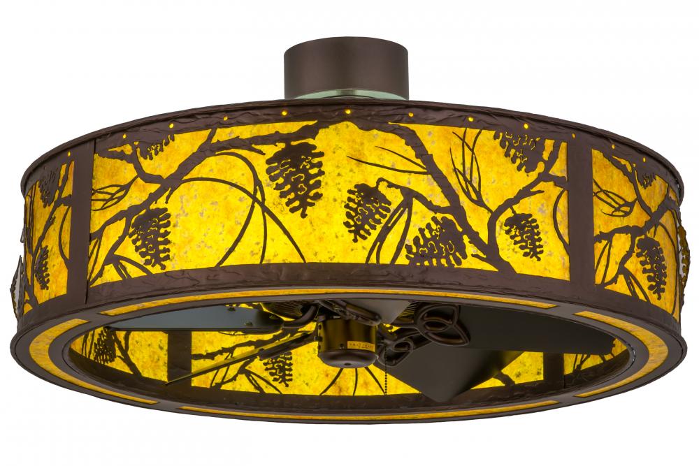 Listen closely. You can almost hear the soft whisper of the pine branches as they dance in the wind through this magnificent creation; which combines custom lighting and fan technologies.This nature-inspired design features beautiful light diffused through Amber Mica; which includes energy efficient LED strips as inner lights for decorative lighting while gentle breezes are produced by the fan spinning quietly in the center. Decorative accents and hardware are featured in a Mahogany Bronze finish and handcrafted by Meyda Artisans at the foothills of the Adirondack Mountains. In the summer; the fan pushes down a windchill that circulates to keep the space cool and comfortable. In winter; the fan is reversed to pull the room air up towards the ceiling and force the warm air back down and circulate to create warmth. Custom sizes; styles; colors and dimmable lamping options are available. UL and cUL listed for damp and dry locations.