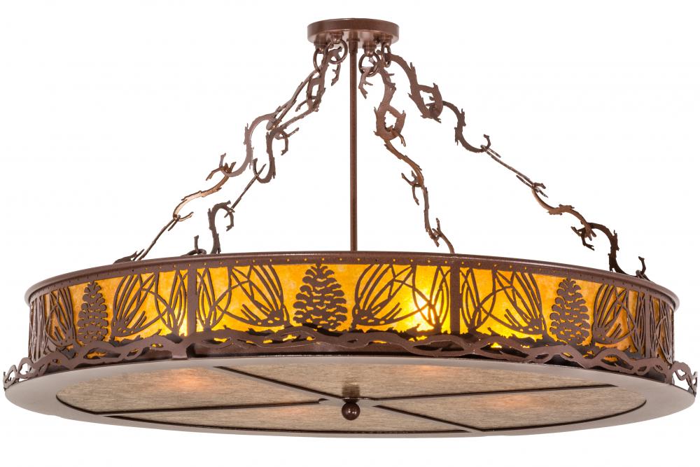 Mother nature comes to light as Mountain pinecones and pine needles are featured on this unique nature inspired ceiling fixture. The charm of the forest comes alive with soft warm ambient light emanating through Amber Mica that is accented by hardware and accents featured in a Rust finish. The fixture is perfect for hallways; entryways; foyers and other rooms where you want to make a stunning design statement. The fixture is handcrafted by Meyda artisans in our manufacturing facility; at the foothills of the Adirondack Mountains. Custom sizes; styles; colors and dimmable energy efficient lamping options are available.