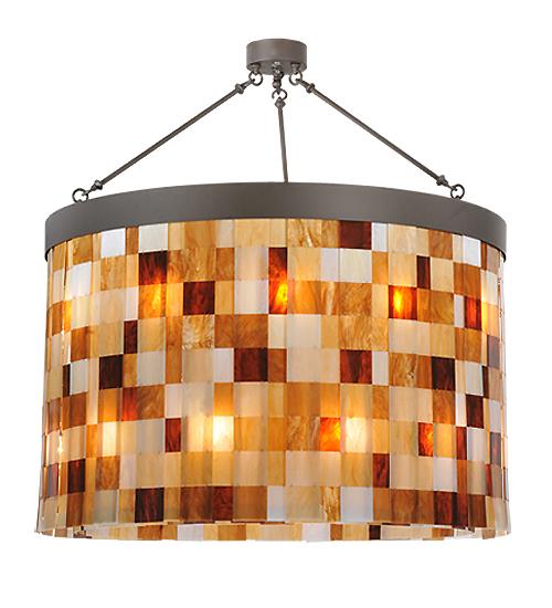 Impeccable interior decor fashion comes to light. A melange of warm colors and textured designs is revealed with miniature Idalight tiles and enhanced with a Statuario Idalight bottom diffuser and a sturdy steel frame hand finished in Oil Rubbed Bronze. This fixture was created by the hands of our artisans at its manufacturing facility in Upstate New York in the USA. Custom sizes; styles and colors are available; as well as dimmable; energy efficient lamping options. The fixture is UL and cUL listed for damp and dry locations.