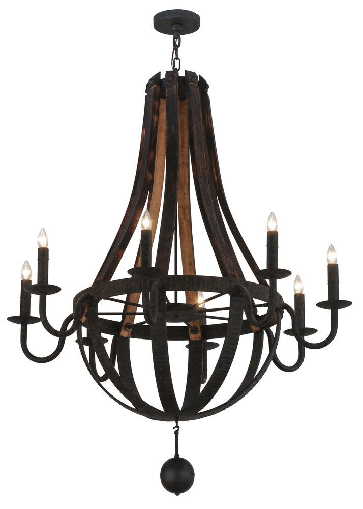 Elegant minimalism meets function with this unique kitchen lighting fixture. 4 Ivory faux candlelights perched on bobeches are embraced by this Classic Rust finished oblong frame. The fixture is enhanced with complementary HandForged Iron scrolled arms. Hooks are designed to suspend fine cookware and accessories. The overall height of this pendant ranges from 28 to 79 inches as the chain length can be easily adjusted in the field to accommodate your specific lighting application needs. Handcrafted in our 180;000 square foot manufacturing facility in Yorkville; New York. Custom finishes and sizes available to meet your needs. UL and cUL listed for dry and damp locations.