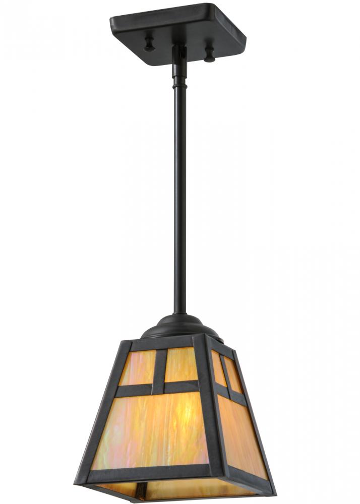A handsome Mission T pattern adorns this striking Craftsman Signature Solid Brass lantern mini pendant. Hand finished with a stunning Craftsman Brown; this mini pendant features a Beige Iridescent Glass Shade. Place these mini pendants in multiples across a bar; island; counter or table to create a dramatic design statement. This pendant was handcrafted by highly skilled artisans in our 180;000 manufacturing facility in Yorkville; NY. Dimmable energy efficient lamping options are available. Custom colors; styles and sizes are offered. UL and cUL Listed for dry and damp locations.