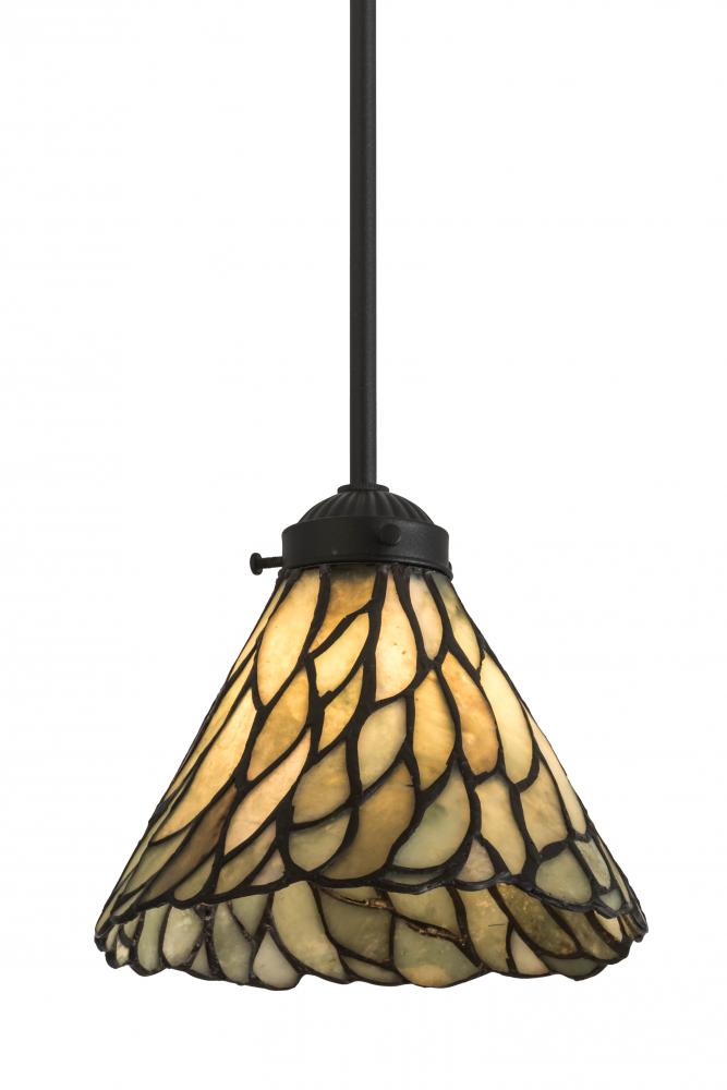 Experience the organic beauty of Jadestone as thinly carved natural stones in Moss Green; Tan; Slate; Ivory and other earthy tones become luminescent in wispy Willow leaf patterns. Jadestone; which represents good luck and health; friendship; wisdom and tranquility; is complemented with hardware featured in a Black Textured finish. UL and cUL listed for dry locations. No two shades will be the same as their individuality can be as remarkably unique as their personality.