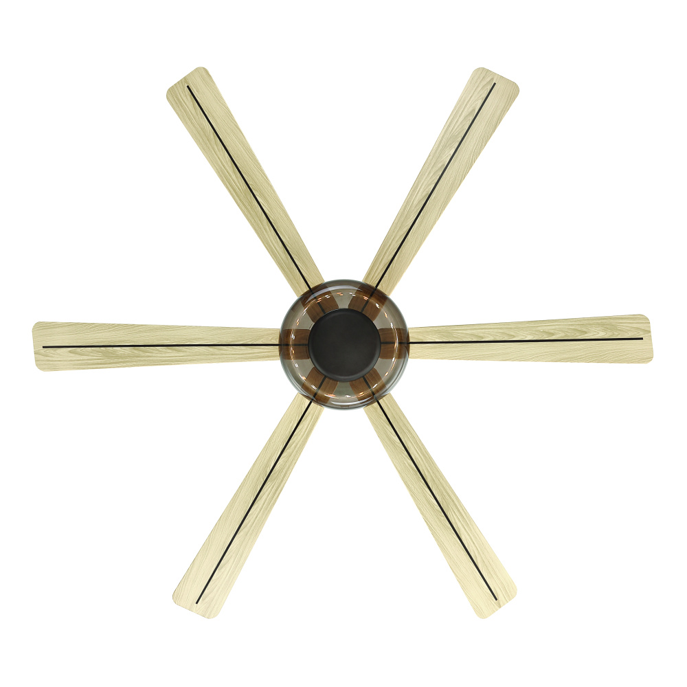 60" 6-Blade 5CCT LED Smart Ceiling Fan - Dark Bronze and White Oak Blades with Brown Smoked Glass