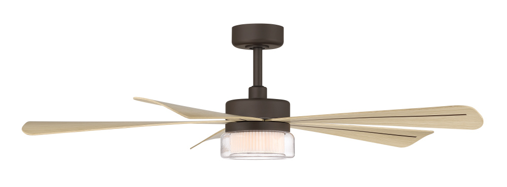52" 5-Blade 5CCT LED Smart Ceiling Fan - Dark Bronze and White Oak Blades with Clear Glass