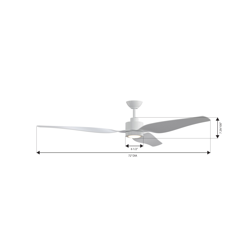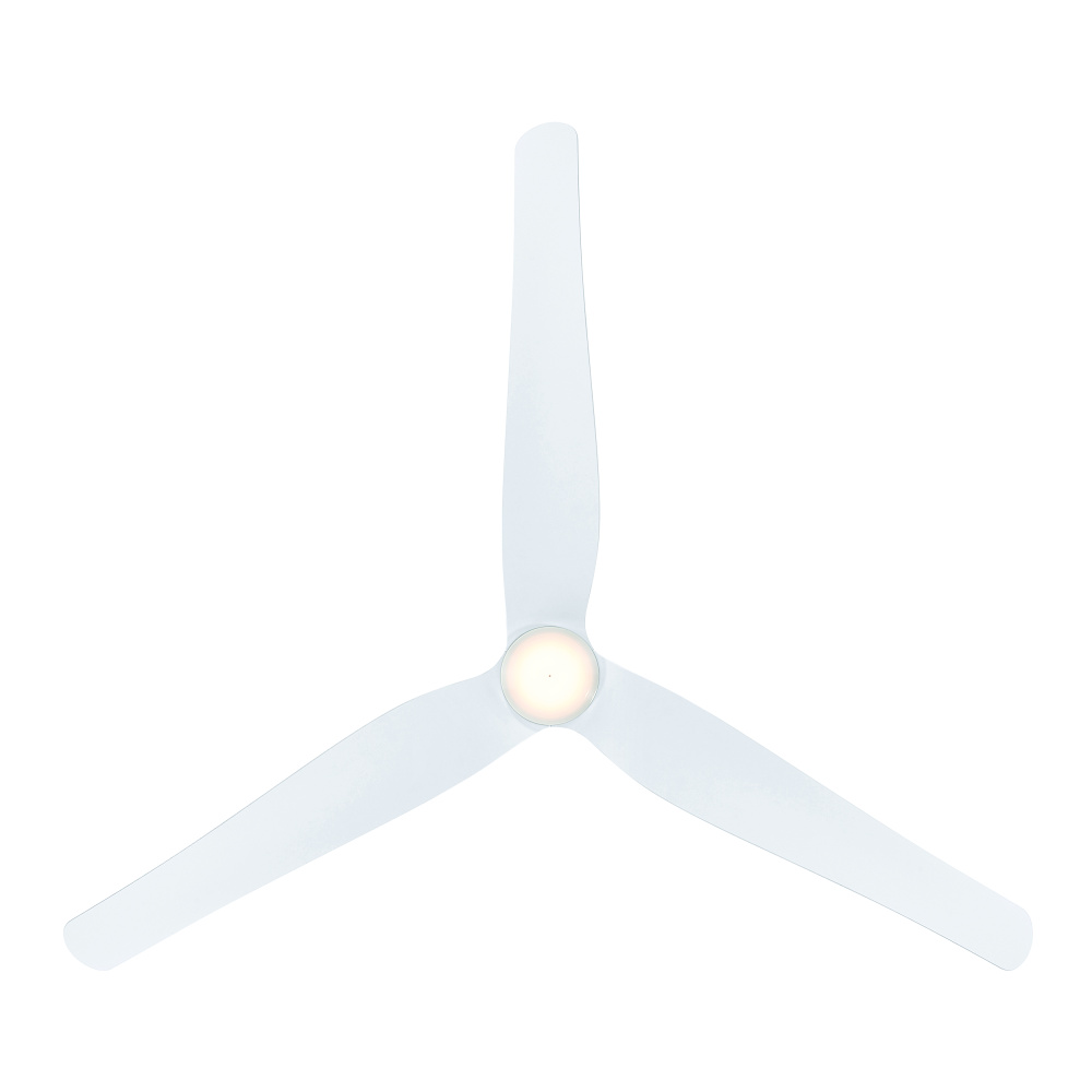 Featuring a Flat White finish with Flat White blades and Etched shade.