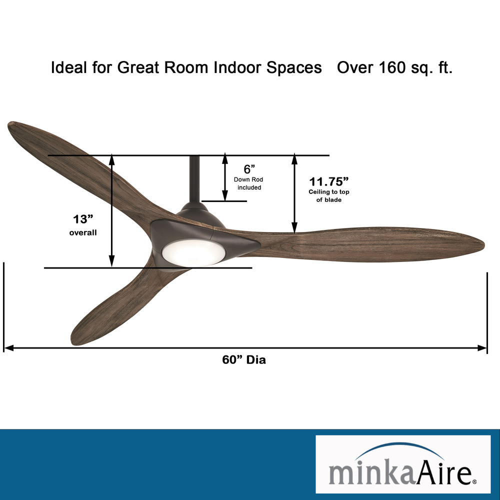 60" 3-Blade LED Ceiling Fan in a Oil Rubbed Bronze Finish with Seasoned Wood Blades and an Etched Lens