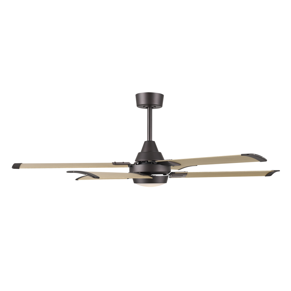 Featuring a Dark Bronze finish with White Oak blades and White shade.