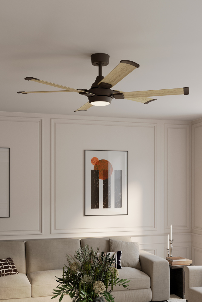 56" 6-Blade 5CCT LED Smart Ceiling Fan - Dark Bronze and White Oak Blades with White Lens