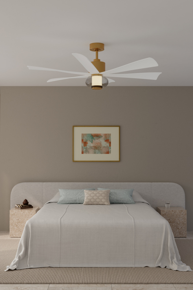 56" 6-Blade 5CCT LED Smart Ceiling Fan - Legacy Brass and Alabaster White Blades with Clear Glass