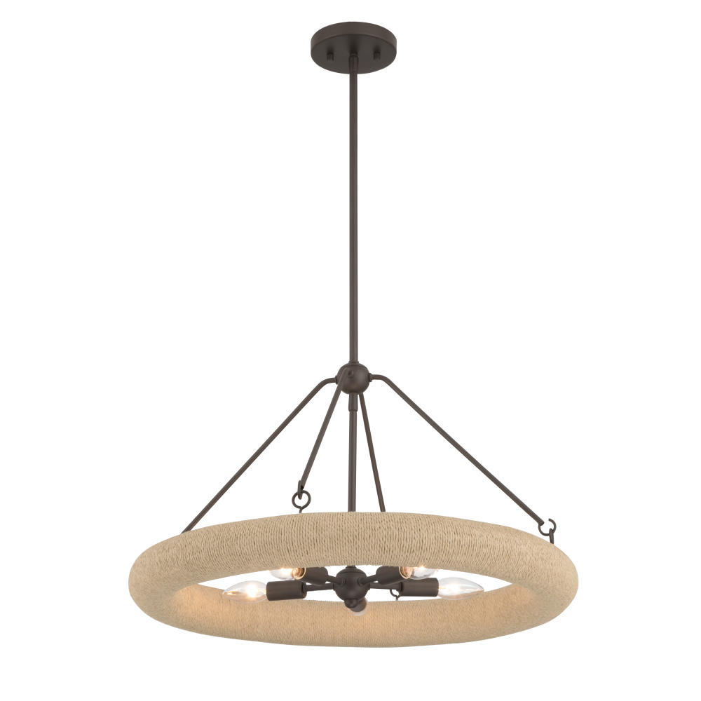 5-Light Pendant - Dark Bronze with Natural Paper Rope