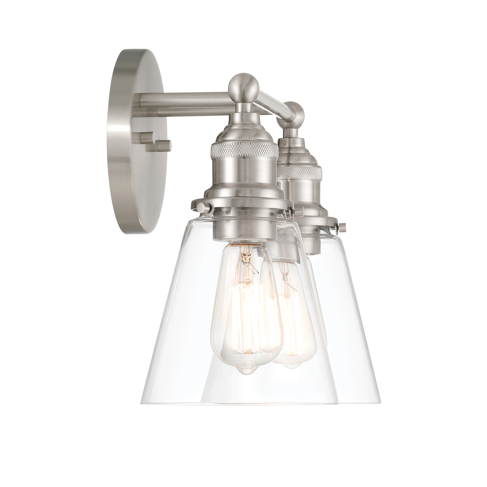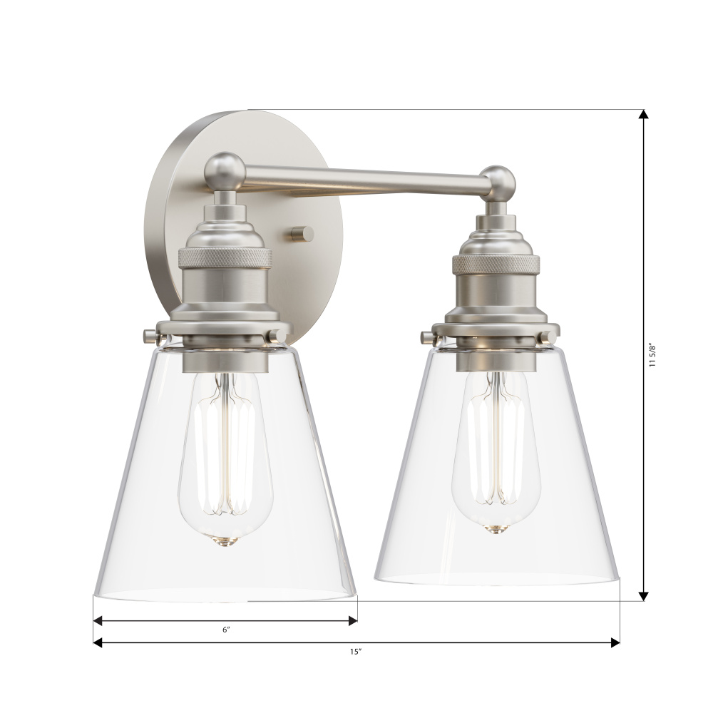 2-Light Vanity - Brushed Nickel with Clear Glass