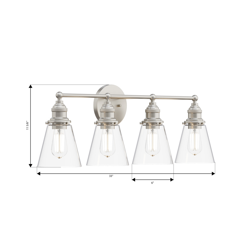 4-Light Vanity - Brushed Nickel with Clear Glass