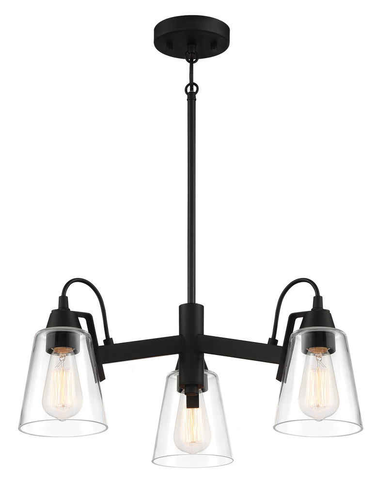 3 Light Chandelier in Coal Finish with Clear Glass