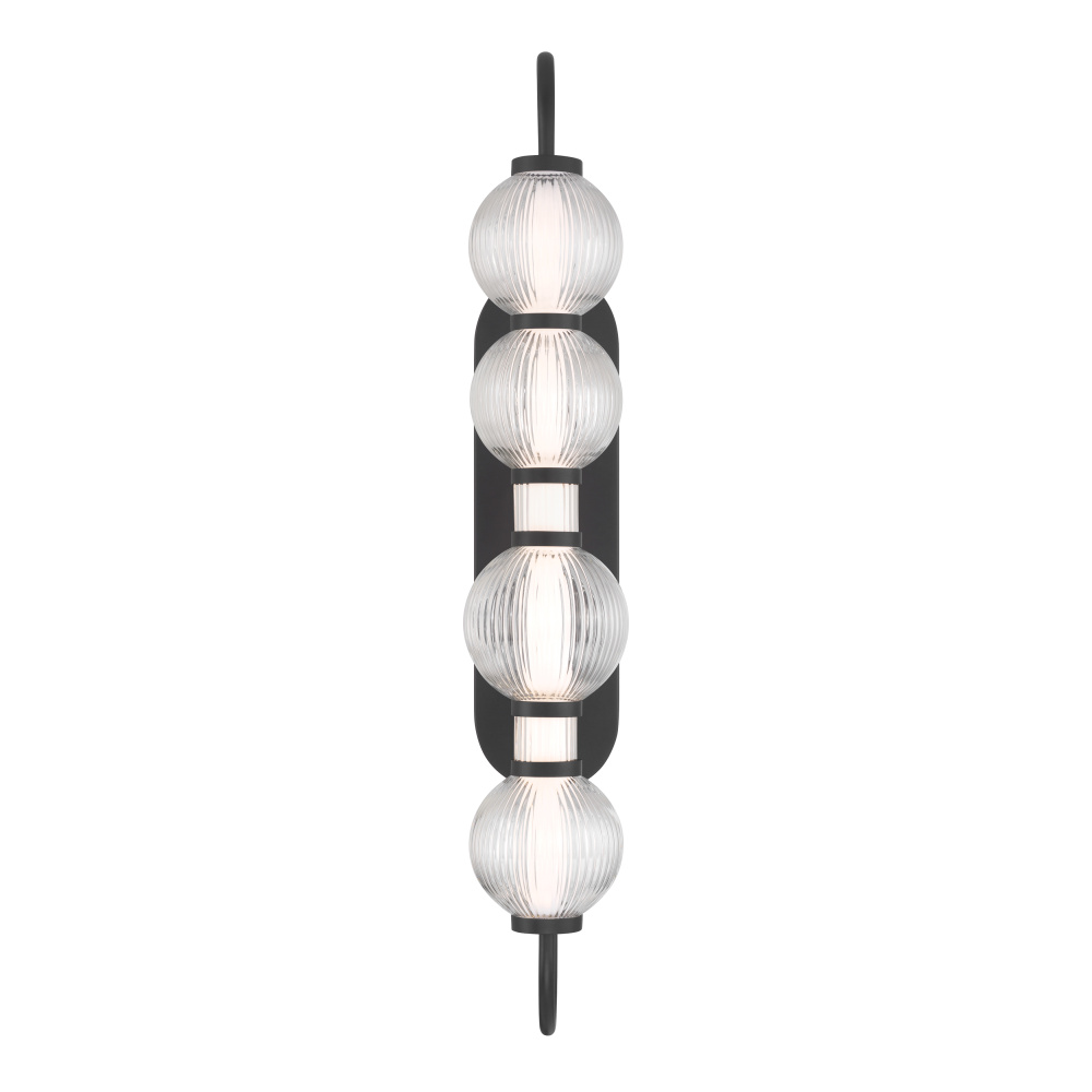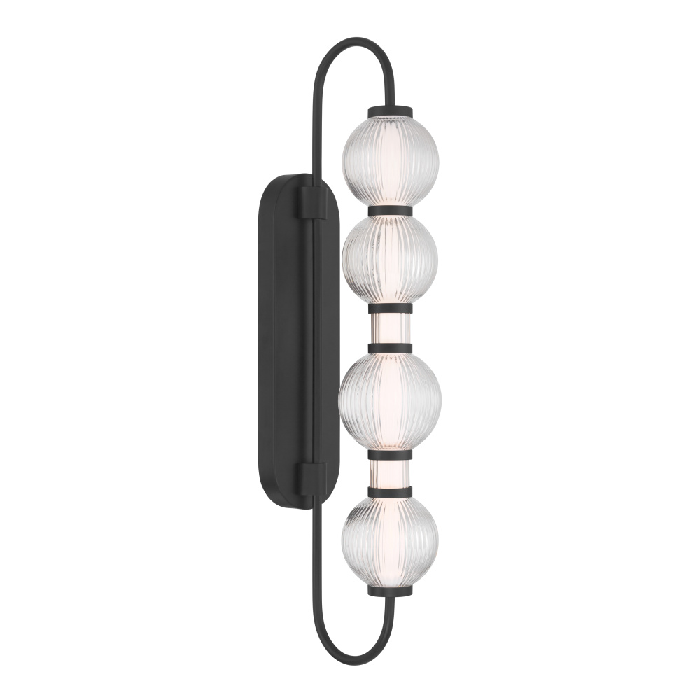 LED Wall Sconce - Dark Matte Black with Clear Ribbed Glass